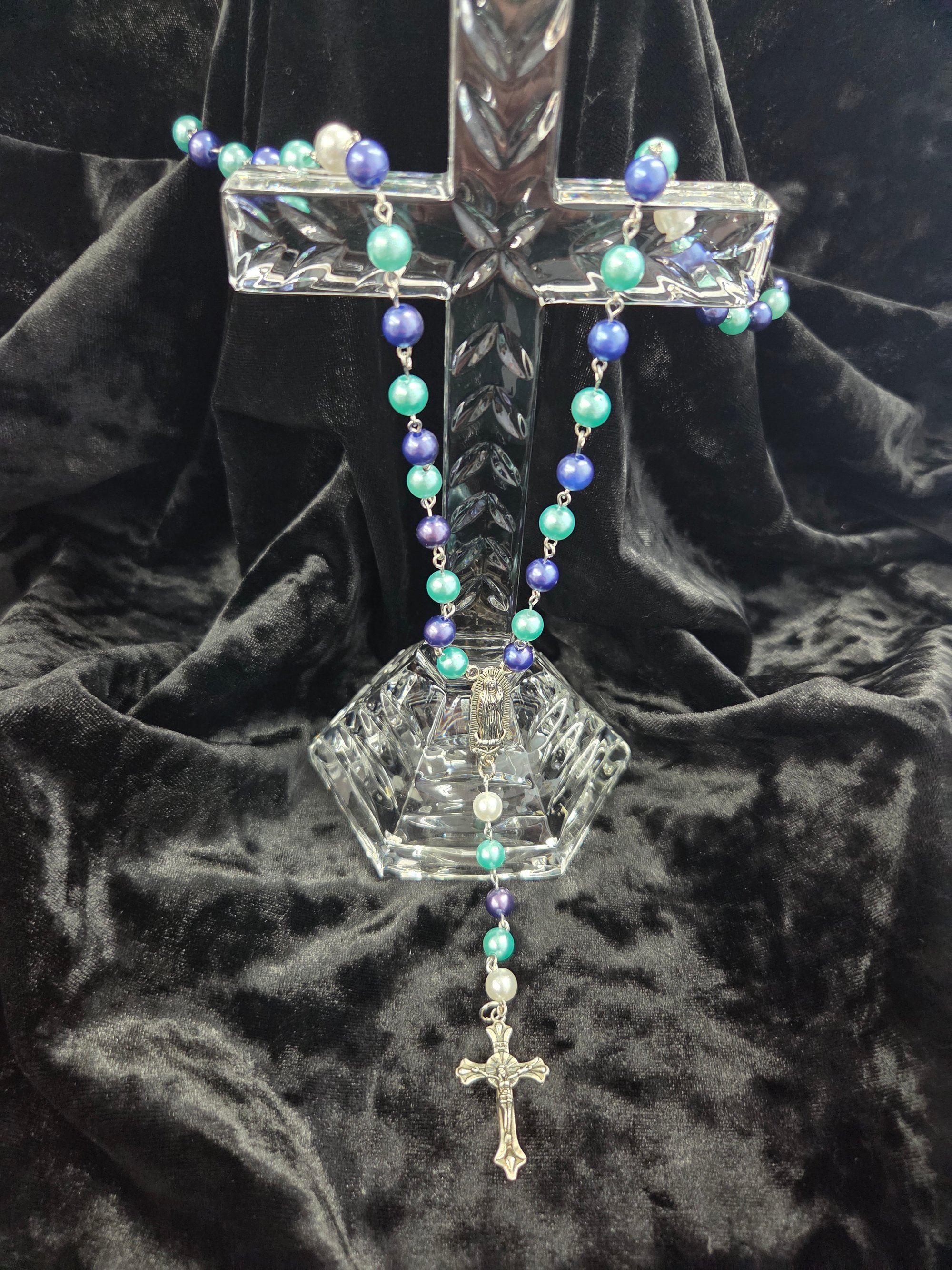 Trinity Grace Rosary – 3-Tone 8mm Beads in Silver Finish Highlights the spiritual symbolism of "Trinity" and the graceful aesthetic.